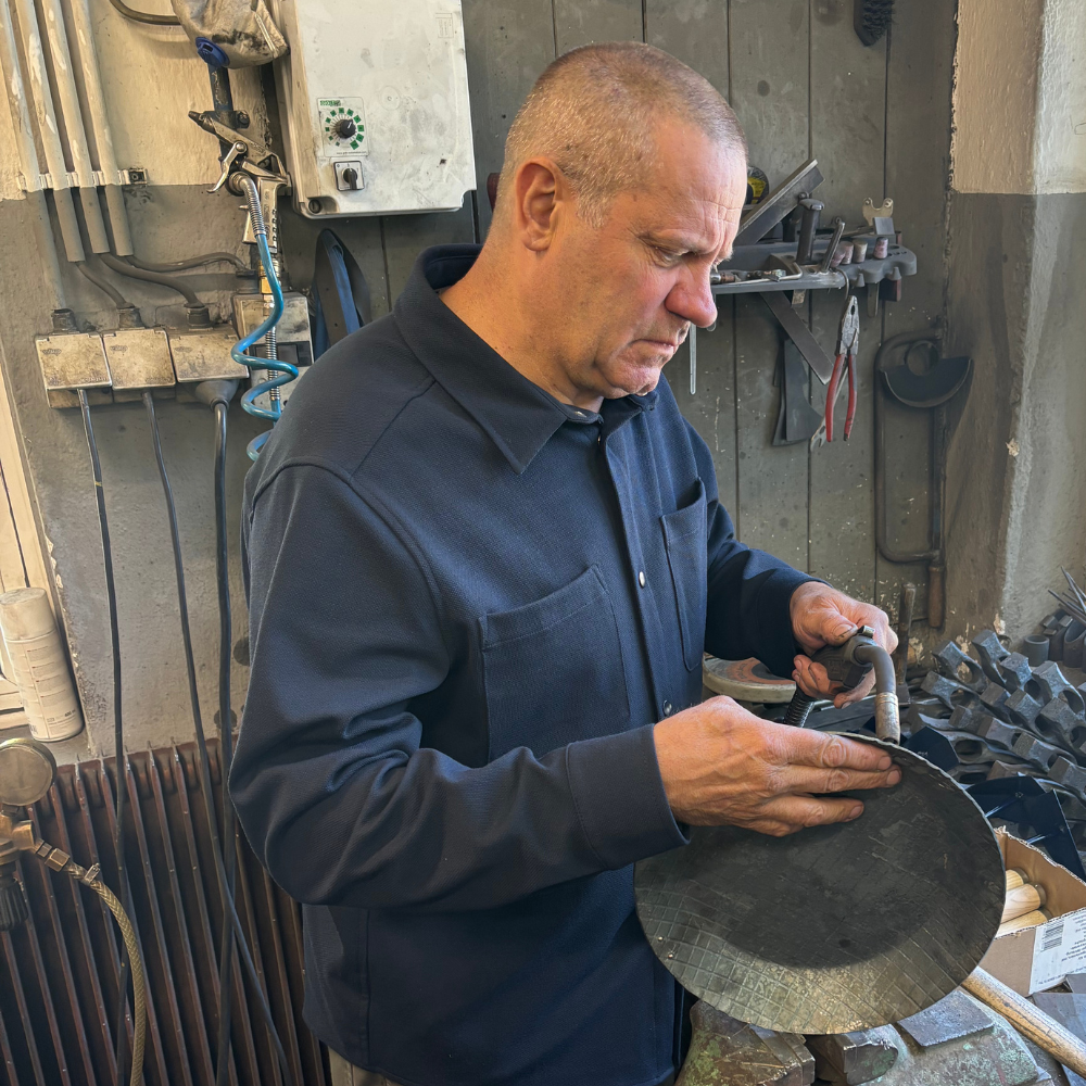 Jede Pfanne, die unseren Online-Shop verlässt, wird in liebevoller Handarbeit von einem unserer Schmiede gefertigt. Durch handwerkliche Fähigkeiten und das spezielle Fertigungs- Verfahren erhalten Elita Eisenpfannen ihre Robustheit und Qualität.